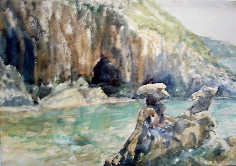 Kamelhoveder ved Bornholm. Akvarel. str 28 x 39